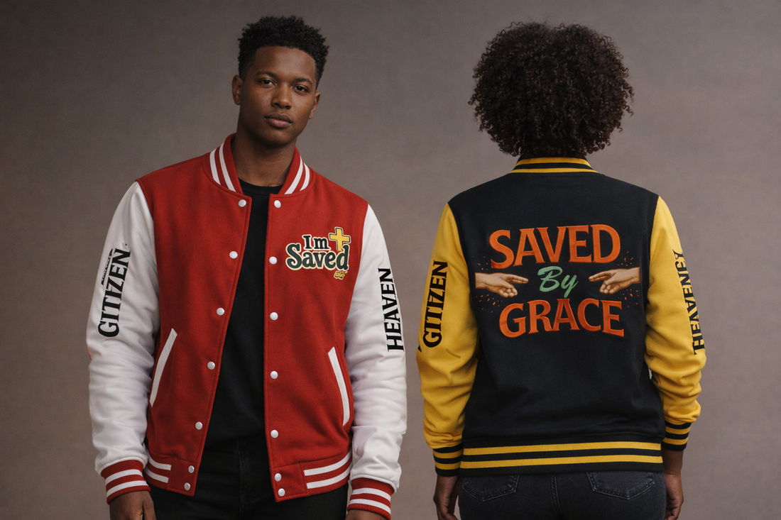 Heavenly Citizen Unisex Saved By Grace Letterman Jacket