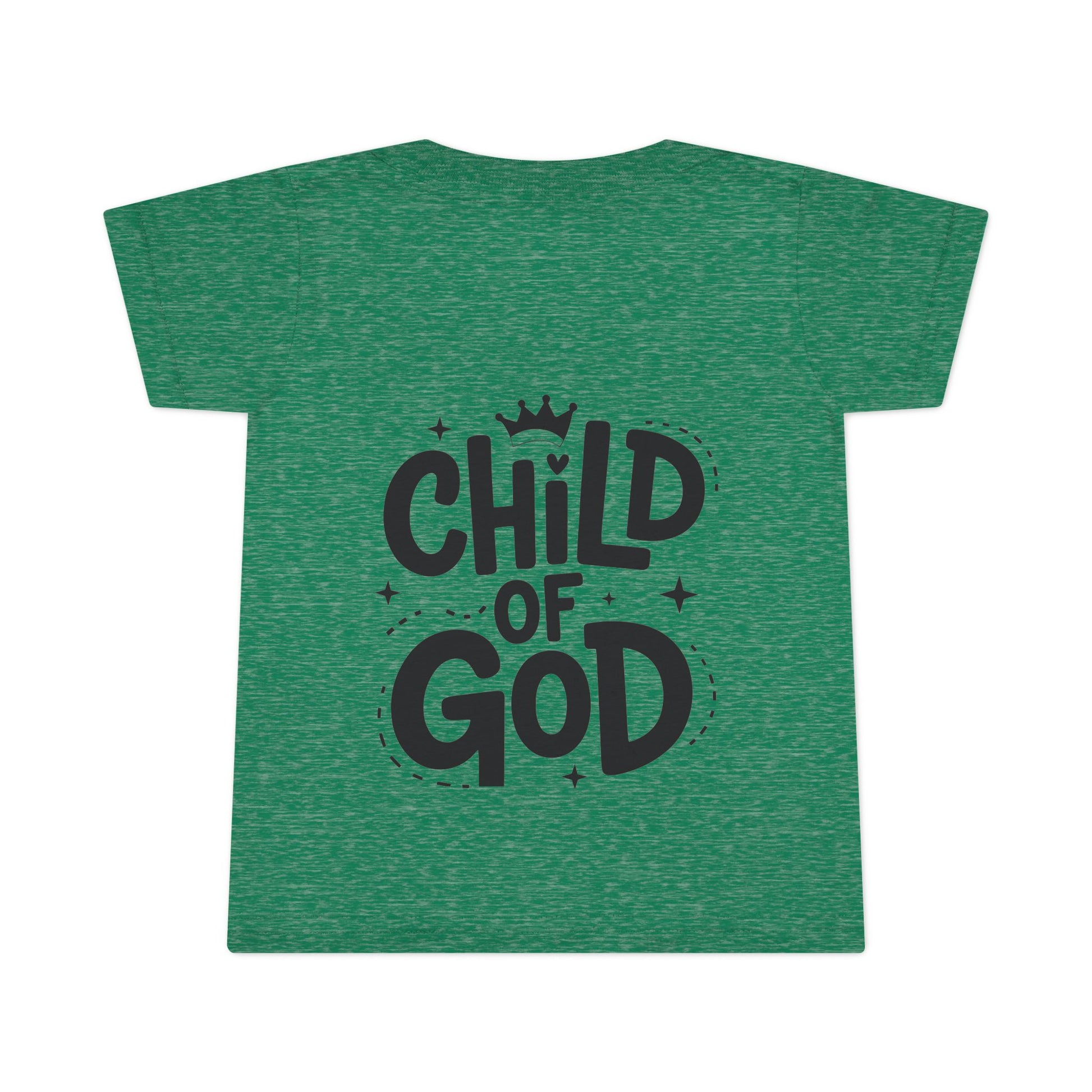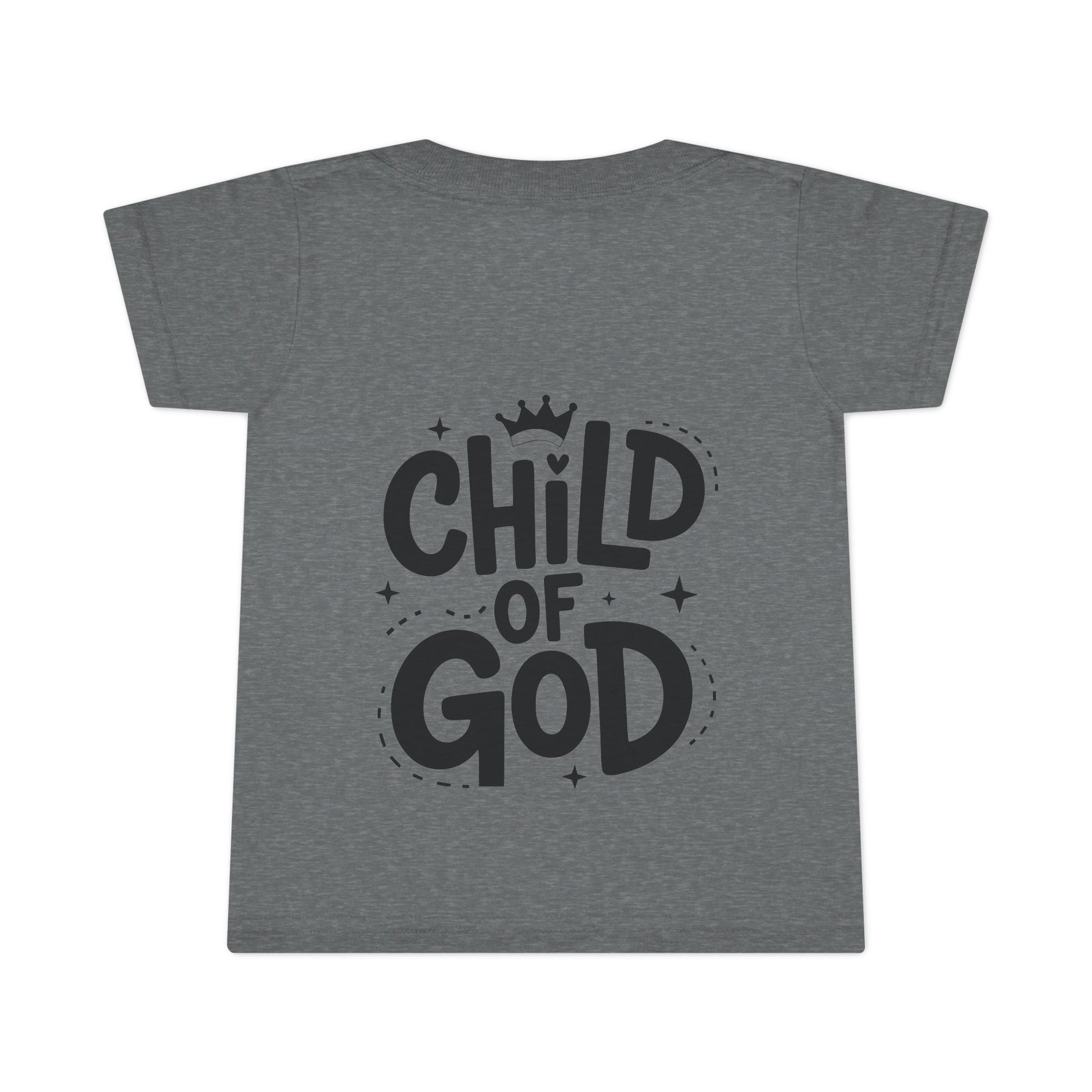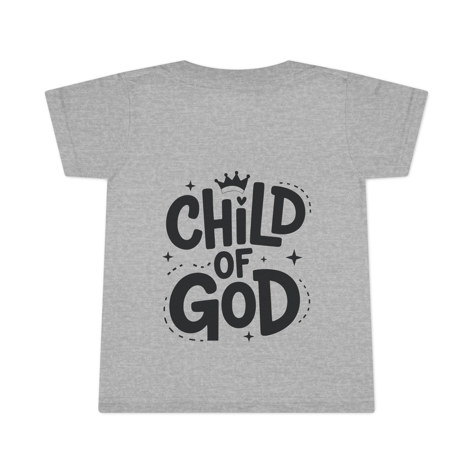 The front features a small, subtle script that keeps the look calm and sweet, while the back carries a bold yet playful “Child of God” message topped with a tiny heart. The design is simple, warm, and confident—created to speak softly to little hearts and offer reassurance to parents and caregivers alike.